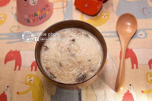 先把3杯雞豬骨高湯和2杯水,和過濾水洗過的1杯米滾煮,煮熟之後把高麗菜、壓碎備用虱目魚魚柳、嫩薑泥放進去煮一點時間就完成了。